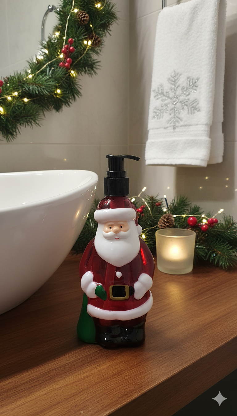 Zachwyć się świątecznym mydłem w płynie w kształcie Mikołaja. Delikatne dla skóry, skutecznie czyści i nawilża. Idealny prezent i ozdoba łazienki!